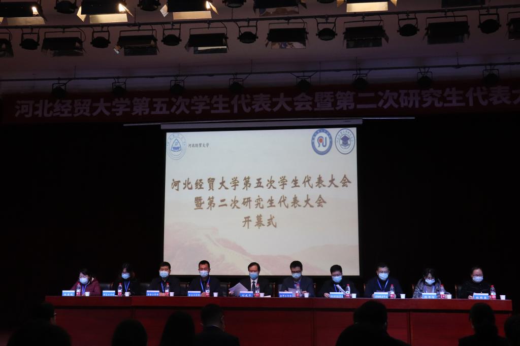 河北经贸大学第五次学生代表大会暨第二次研究生代表大会是在全校上下认真研读习近平总书记七一重要讲话精神,深入领会党的十九届六中全会精神的浓厚氛围里,在向着全面建成社会主义现代化强国的第二个百年奋斗目标迈进的重大历史关头召开的一场的青春盛会。本次大会的主要任务是:对我校学生会过去一年的主要成绩和基本经验进行全面总结,讨论制定下一阶段学生会的工作思路和内容;选举产生新一届学生委员会、研究生委员会委员,常务代表委员会委员及学生会、研究生会主席团成员,团结带领广大同学勇担强国使命,在实现中华民族伟大复兴中国梦的进程中书写青春篇章。