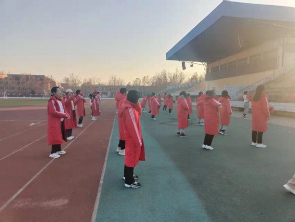 体能训练环节,为使志愿者们能更好的适应张家口赛区的寒冷环境,该校今日进行室外的跑步训练,志愿者们先进行了热身运动,帮助身体快速适应即将进行的跑步训练,为之后的高强度训练做好准备。热身运动后进行时长半小时的跑步训练,既能锻炼身体素质,保证志愿者们的健康安全,提高免疫力,又能使志愿者们提前适应寒冷环境,为之后在张家口极寒天气下服务冬奥打下了良好基础。