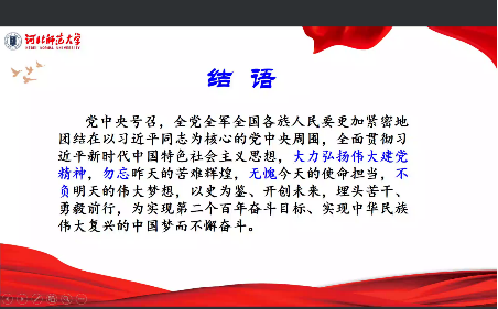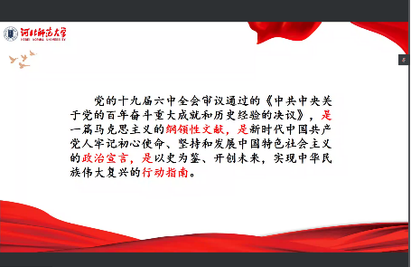 河北师范大学马克思主义学院安巧珍教授作《全面建设社会主义现代化强国的政治宣言和行动纲领——学习党的十九届六中全会精神》专题讲座。安巧珍教授带领全体志愿者回溯百年奋斗党史,从总结党的百年奋斗重大成就和历史经验的必要性、党的百年奋斗取得的重大成就、历史意义、历史经验、新时代中国共产党的总体要求和党的六中全会提出的新思想新论断六大角度全面解读党的十九届六中全会审议通过的《中共中央关于党的百年奋斗重大成就和历史经验的决议》。她强调,当代青年要全面贯彻习近平新时代中国特色社会主义思想,坚决反对历史虚无主义,无愧今天的使命担当,做好冬奥服务工作,为冬奥事业发光发热。