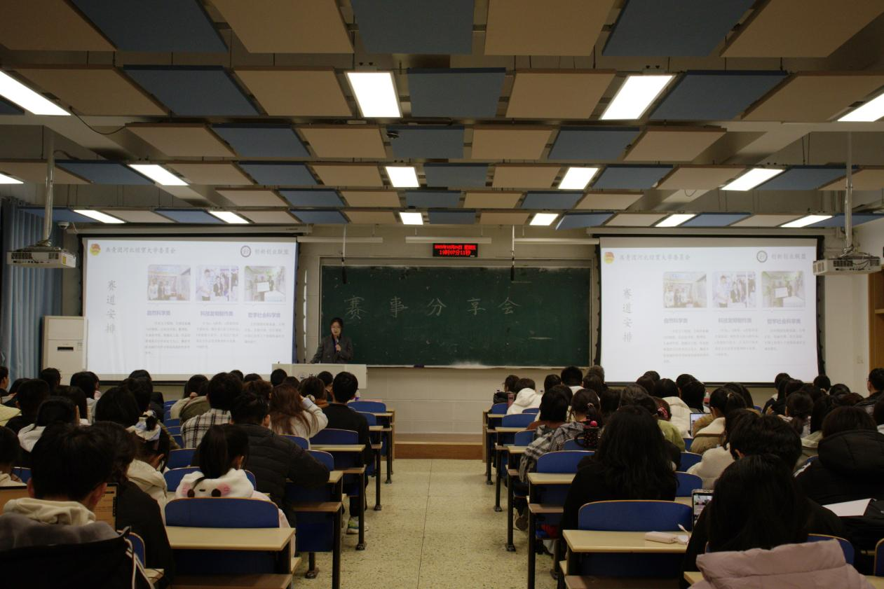2025年10月24日晚上七点,我校创新创业联盟与会计学院科创空间站联合举办的“竞赛科普讲座”在北三教A101如期举行,活动到场近180人。本次活动聚焦大学学科竞赛与双创赛事,旨在帮助初入校园的同学们系统构建赛事认知,扫清参赛障碍,点亮竞赛之路的第一盏灯。