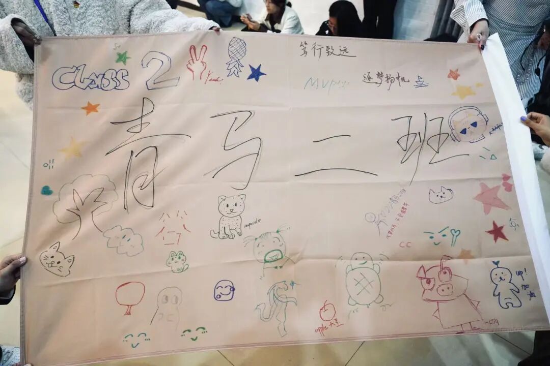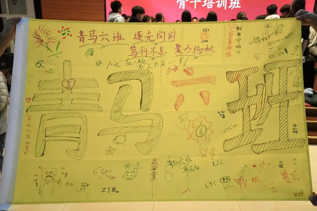 当晚,青马班辅导员组织开展破冰活动。各班完成临时团支部组建、班委选举和班旗绘制等核心环节,并通过互动交流促进学员了解与融合,有效增强班级凝聚力,为后续的集体学习和团队协作筑牢根基。