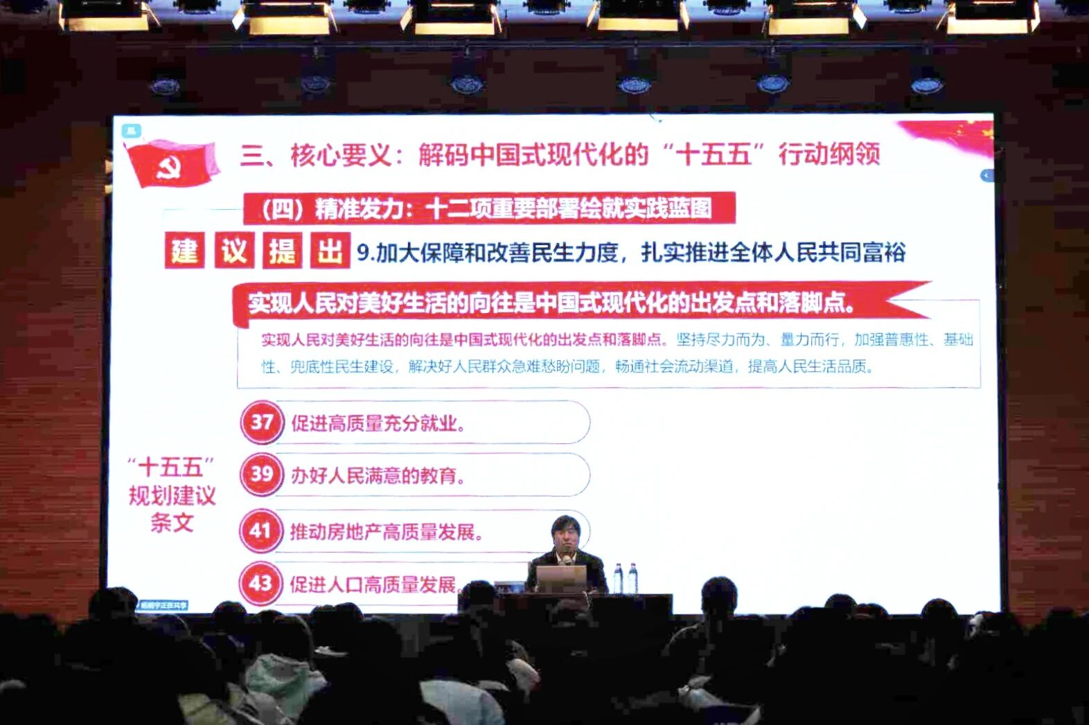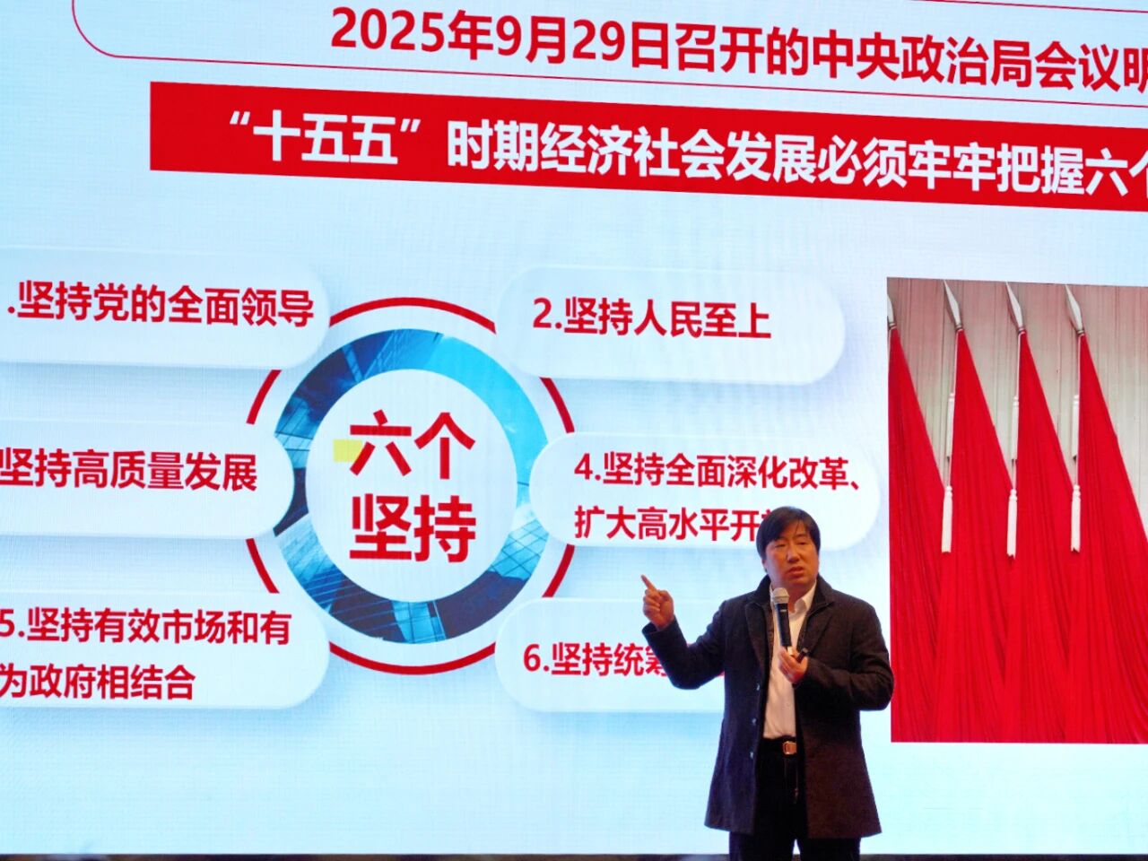 赵立永重点围绕“党的二十届四中全会会议概况”、“全会对十五五时期我国发展环境总体判断”、“党的二十届四中全会的核心要义”三个方面展开讲解,系统阐释了“十五五”时期的六大原则、十二项部署和梯次目标体系。他强调“安全是发展的根基,改革是现代化的引擎”,鼓励学员们在百年变局中锤炼底线思维、树立系统观念、增强斗争本领,自觉将个人发展融入民族复兴大局。