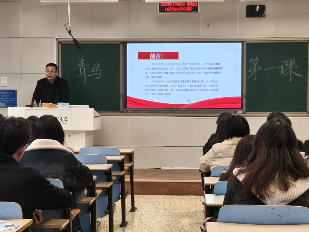 11月6日下午,会计学院“第十九期青年马克思主义者培养工程”培训班第一课在北三教A204开讲。会计学院党委书记王继伟以“争当社会主义接班人”为主题对会计学院优秀学生骨干进行培训,2024级、2025级40余名青马学员参加。