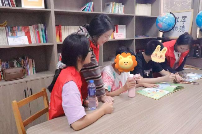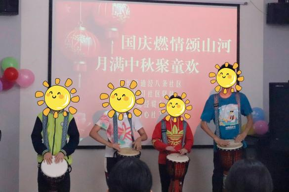 活动当天,孤独症儿童带来唱歌、跳舞及朗诵等精彩表演,以纯真才艺展现自我风采,现场掌声阵阵。表演结束后,16名志愿者分三组开展服务。朗读组志愿者与儿童共读绘本并为其耐心讲解,助力孩子在阅读中慢慢敞开心扉、敢于表达。绘画组的志愿者们陪伴儿童们用画笔进行创、适时给予鼓励,激发他们的创作力与表达欲。非洲鼓互动环节,志愿者播放富有节奏的音乐,示范拍手、跺脚等律动,引导儿童跟随音乐拍打鼓面,帮助他们建立表达信心的意识,通过节奏共鸣降低焦虑。