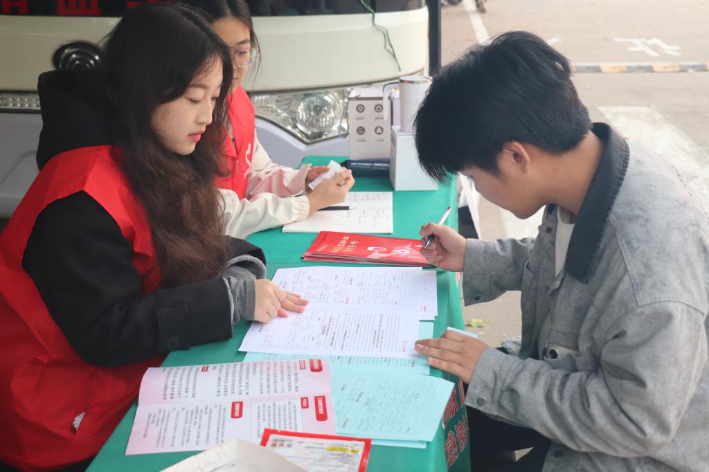 献血周前期,我校构建“线上+线下”立体宣传矩阵,线上通过学校官网、校团委公众号等平台发布献血倡议通知,向师生详细解读献血流程与健康要求。线下在教学楼、宿舍楼、食堂等多个校园区域分发献血知识手册,全方位普及献血科普知识。献血周期间,河北省血液中心医护人员与我校志愿者分工协作,现场暖意融融,同学们在引导下有序完成信息登记、健康初筛与血液采集等环节,尽显青春风貌。医护人员专注操作血压仪、采血设备,开展预检登记与血液采集工作。志愿者化身“志愿红”,提供咨询引导、信息协助、礼品发放等服务。