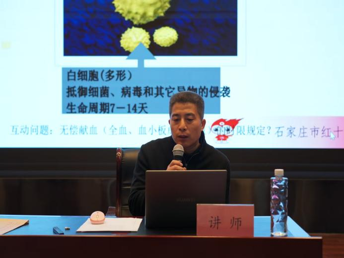活动设置多个特色环节:趣味互动环节中,学生们通过拾取答题卡作答、掷骰子闯关的形式参与游戏,在轻松氛围里巩固了“三救三献”基础知识;创意彩绘环节里,同学们以画笔为媒介,将奉献理念转化为鲜活图案,让知识传递更具感染力。专业分享环节中,河北省红十字会三献工作事务中心张忠桥老师围绕造血干细胞捐献展开详细讲解,涵盖匹配要求、全流程及注意事项等内容,帮助师生对造血干细胞捐献领域形成更全面、深入的认知。