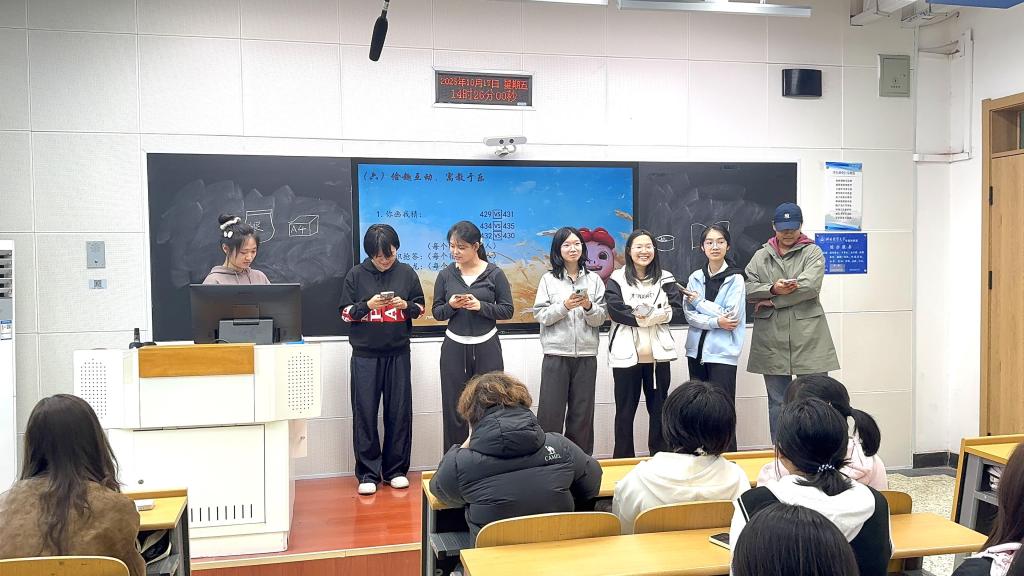 本次主题班会内容丰富、形式多样,通过“全球俭知·数据冲击”“俭影定格·实践真知”“俭风传扬·以歌铸魂”“俭查共建·榜样同行”“俭趣互动·寓教于乐”“筷乐俭约,食尚减塑”“俭语分享·认知提升”“俭约承诺·铭记于心”八大环节层层递进,让勤俭节约理念深入人心。从用直观数据揭示资源现状到用趣味活动强化认知再到引导全员立下践行誓言,八大环节环环相扣,将理论认知、实践观察、情感共鸣与行动承诺融为一体,让勤俭节约的理念不仅停留在口号层面,更走进了每一位参与者的心中。